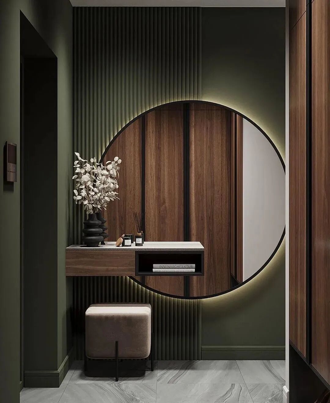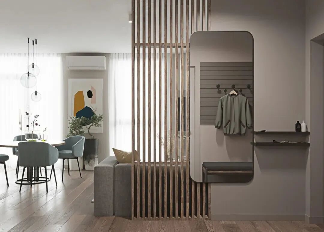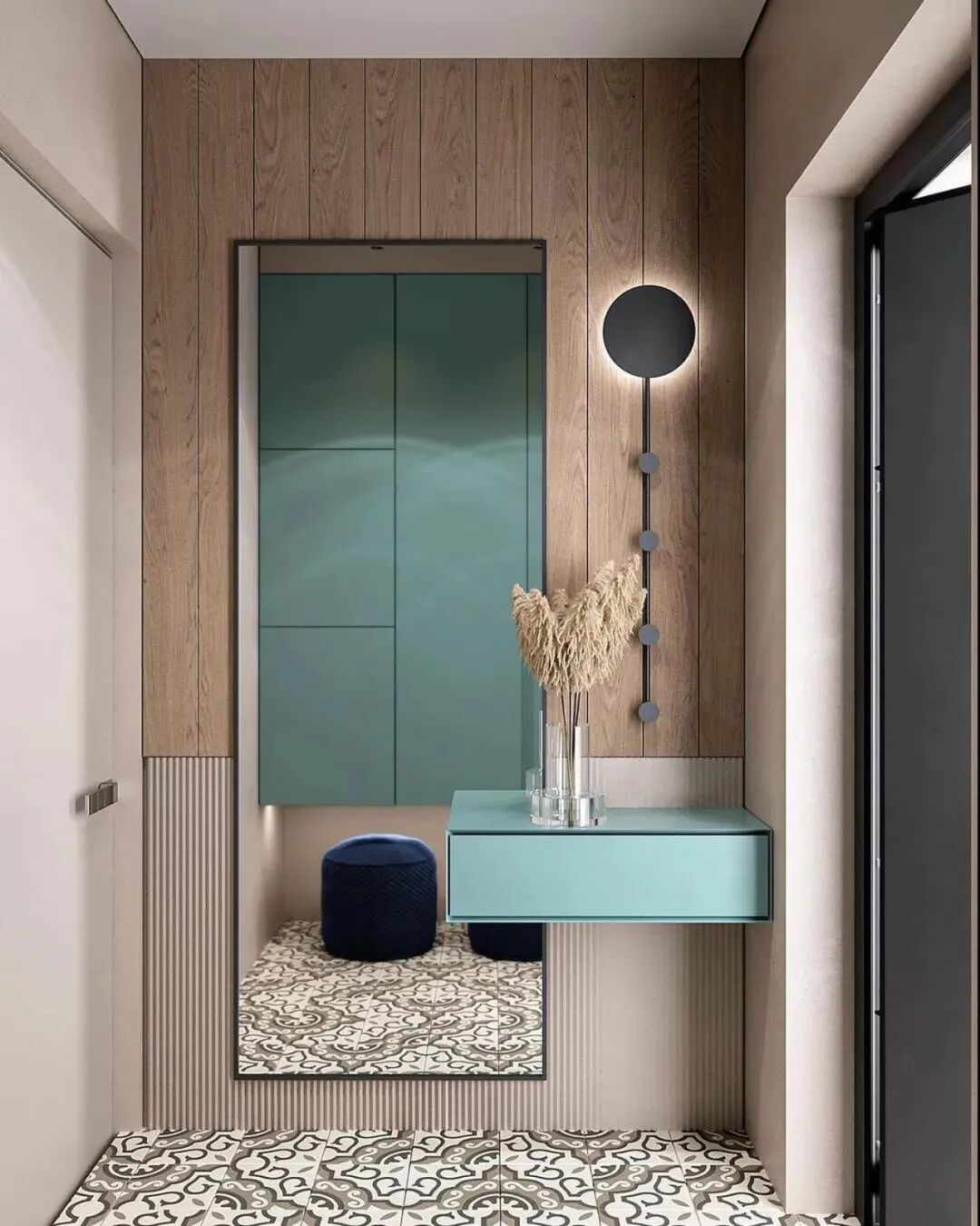 镜子不仅可以帮助我们整理自己的外表,还可以扩大空间。鞋凳和小型储物柜可满足日常的基本需求。