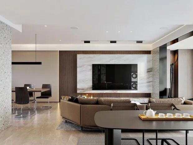 户主诉求:无需太多繁杂的装饰,以简洁和纯粹的美好家居为主就行。设计师结合户主需求并加入自己想法,从木质元素入手,布置上简约舒适的家具软装,简单装饰布置,即可打造出一种简约自然而舒适的居住氛围感。客厅 无主灯的天花设计,让柔软的光线将客厅变得更加温馨,木…