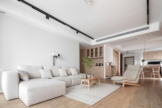 户主诉求:无需太多繁杂的装饰,以简洁和纯粹的美好家居为主就行。设计师结合户主需求并加入自己想法,从木质元素入手,布置上简约舒适的家具软装,简单装饰布置,即可打造出一种简约自然而舒适的居住氛围感。客厅 无主灯的天花设计,让柔软的光线将客厅变得更加温馨,木…